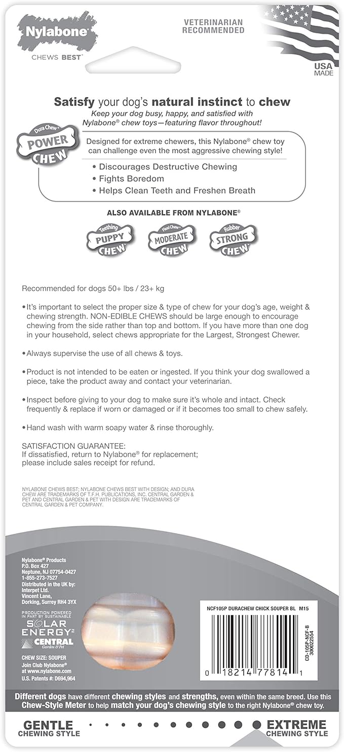Nylabone Textured Knuckle Bone Power Chew Toy for Dogs, Durable & Tough Dog Toys for Aggressive Chewers, Chicken Flavor, X-Large - 50+ lbs, 1 Count