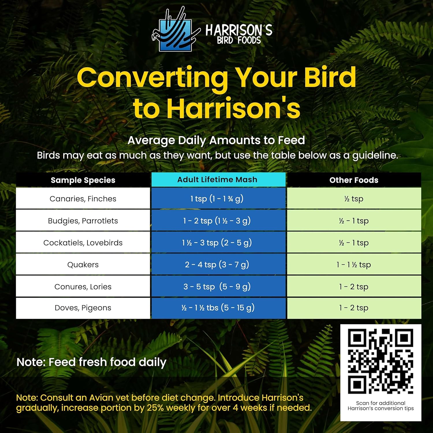 - VERSATILE USAGE FOR YOUR BIRDS NEEDS: From conversion to year-round maintenance formula for healthy, non-breeding, non-molting birds including canaries, budgies (parakeets), cockatiels, doves, lovebirds, conures, parrotlets, pigeons and other small birds. Indulge your bird with our delicious cockatiel food or lovebird food, perfect for adding variety to their diet. This formula is perfect for balancing cut up vegetables and fruits (Chop).