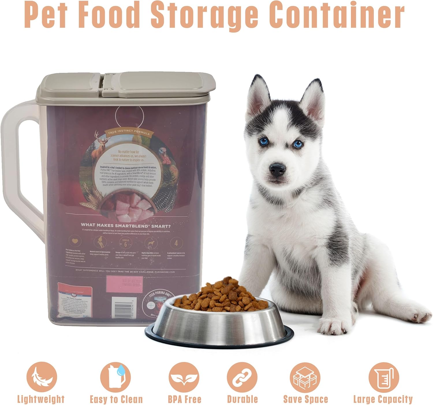 - SMART SPACE SAVER - Slim 8 quart pet food container fits easily in kitchen cabinets, pantries, or wall shelves, maximizing storage without taking up valuable space.