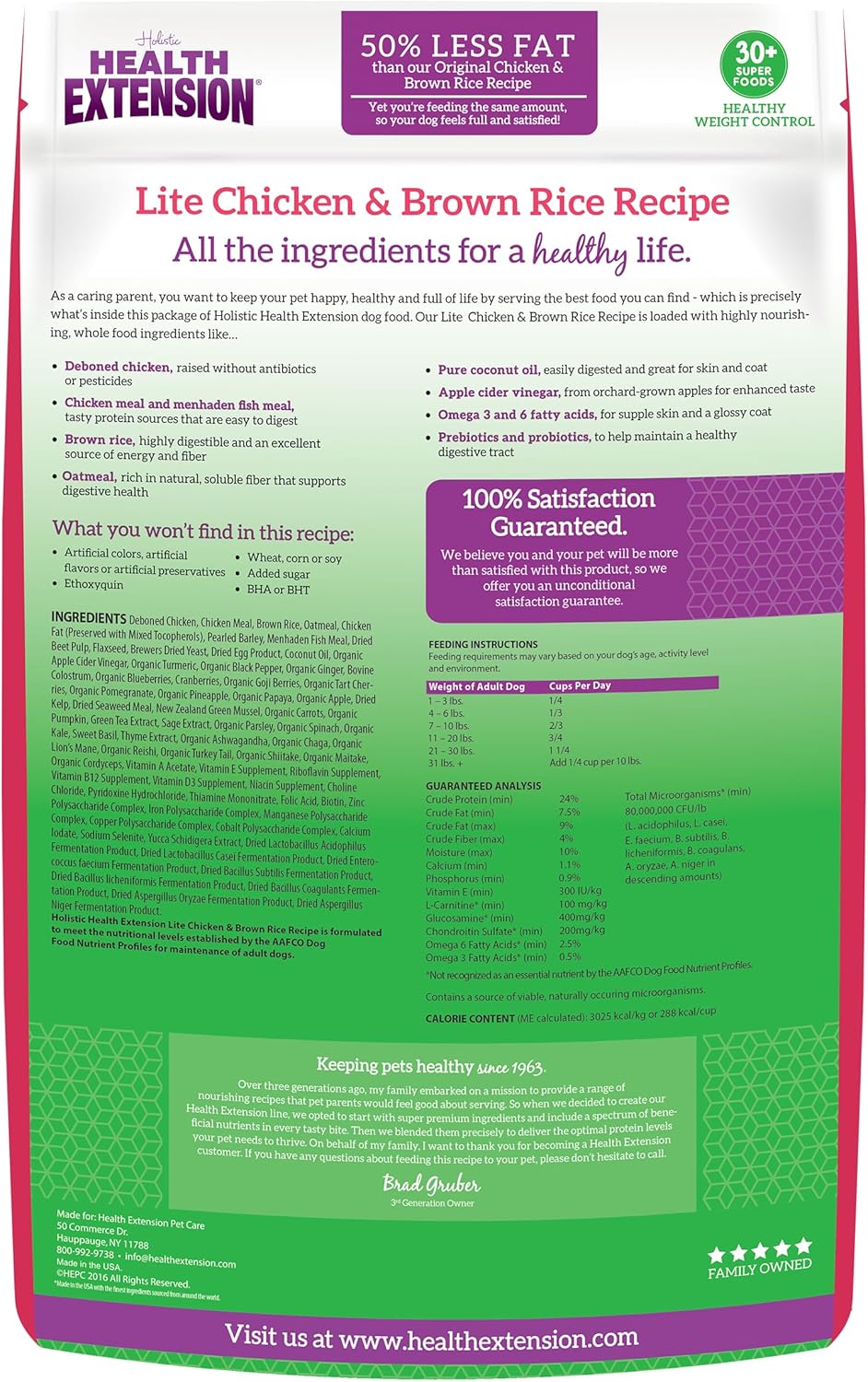 Health Extension Lite Chicken & Brown Rice Dry Dog Food, Low Fat Formula Supports Healthy Weight, with Probiotics & Superfoods for Digestion & Coat Health (15lb)