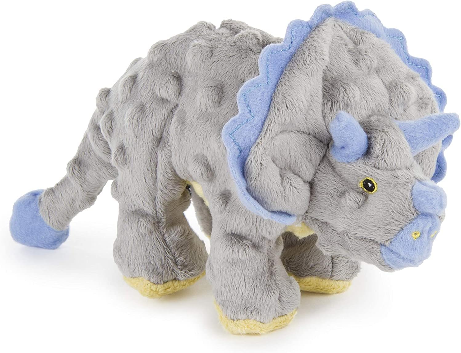 goDog Dinos Frills Squeaky Plush Dog Toy, Chew Guard Technology - Gray, Small
