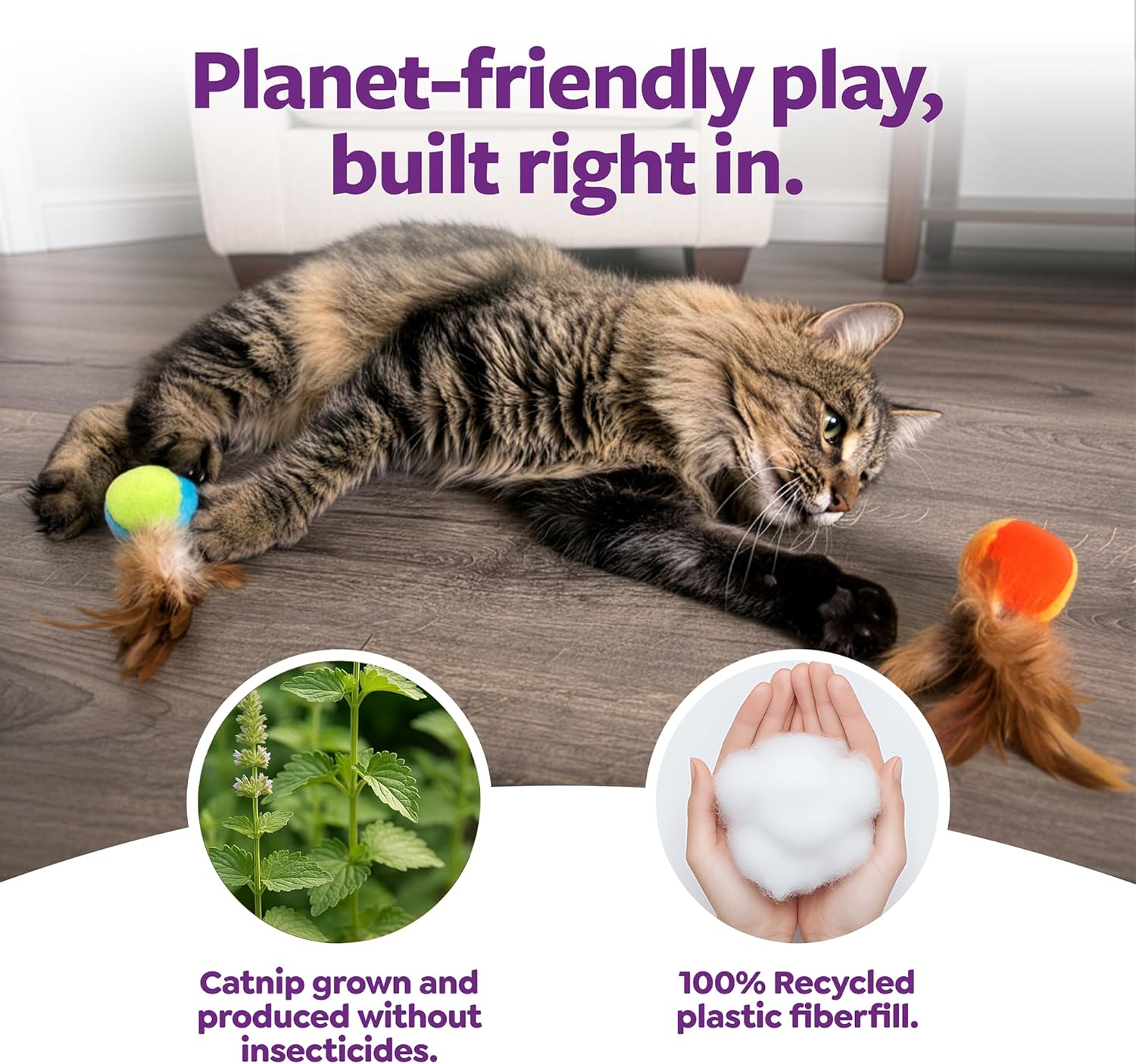 - ENTICES CATS: Perfectly sized, lightweight toys that cats can easily pick up, carry, and play with; these soft plush ball toys are topped with fluffy feathers that entice your cat's hunting instincts