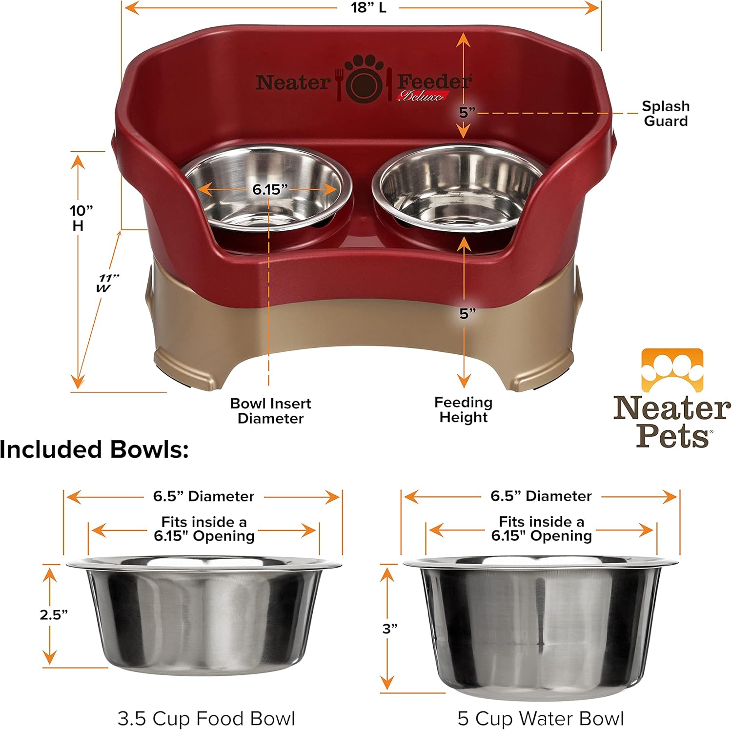 Neater Pet Brands Neater Feeder Deluxe Mess Proof Dog Bowls Elevated for Medium Dogs 19-40 lbs, Made in USA, No Spill Raised Dog Food Bowl Stand Feeding Station, Food and Water Bowl Set, Cranberry