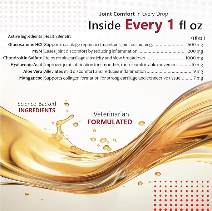- All-in-One Joint Care: Joint MAX Liquid combines glucosamine, chondroitin, MSM, and vitamin C in one comprehensive formula, providing holistic joint care for your canine companion.