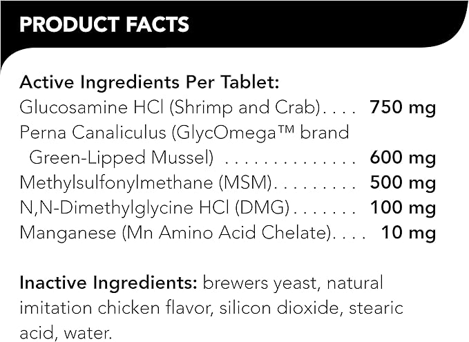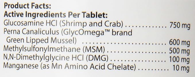 - Features Glyco Omega brand perna mussel with added MSM and DMG