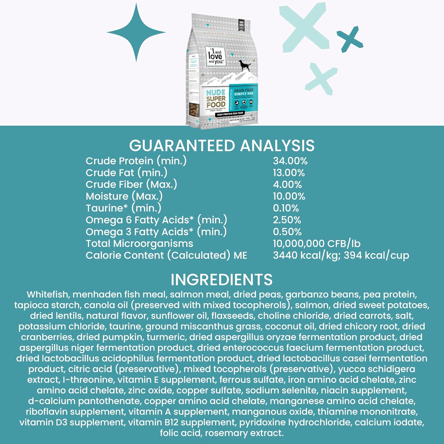 I and love and you Nude Super Food Dry Dog Food - Salmon + Whitefish - Prebiotic + Probiotic, Grain Free, Real Meat, No Fillers, 5lb Bag