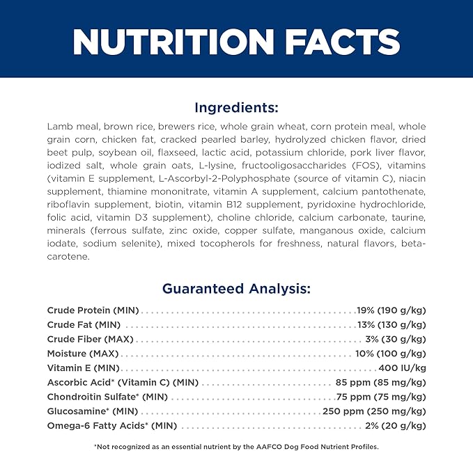 Hill's Science Diet Large Breed Adult Dry Dog Food 1-5, Quality Protein for Joint Support & Lean Muscles, Lamb & Brown Rice Recipe, 33 lb. Bag