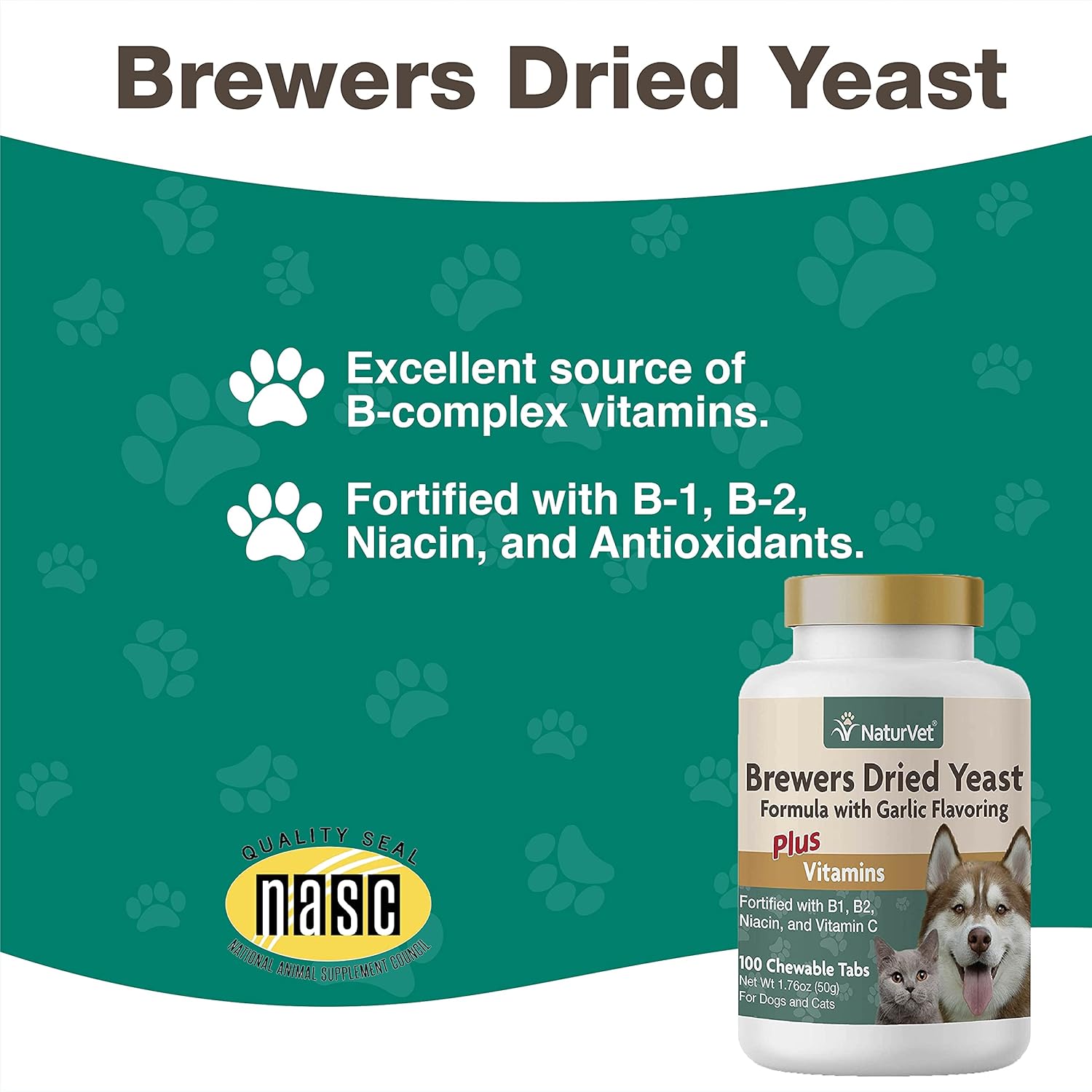 NaturVet Brewers Dried Yeast Formula with Garlic Flavoring Plus Vitamins for Dogs and Cats, Chewable Tablets, Made in The USA with Globally Source Ingredients 100 Count