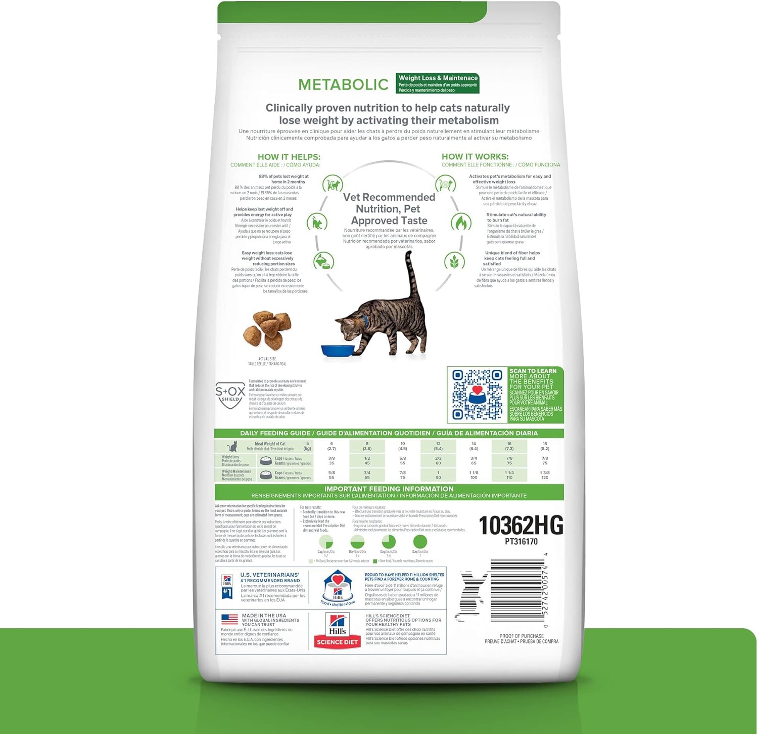 - Hill's Prescription Diet Metabolic Cat Food clinical nutrition helps cats lose weight and and keep the lost weight off naturally by activating their unique metabolism