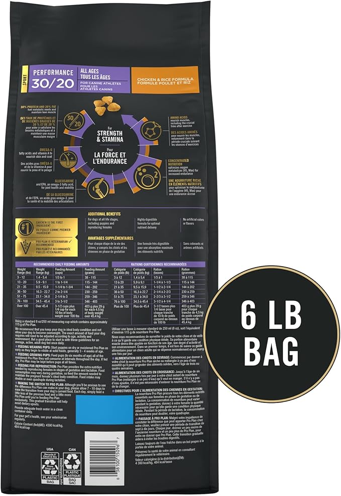 Purina Pro Plan Sport Performance 30/20 Chicken and Rice Formula High Protein Dog Food - 6 lb. Bag