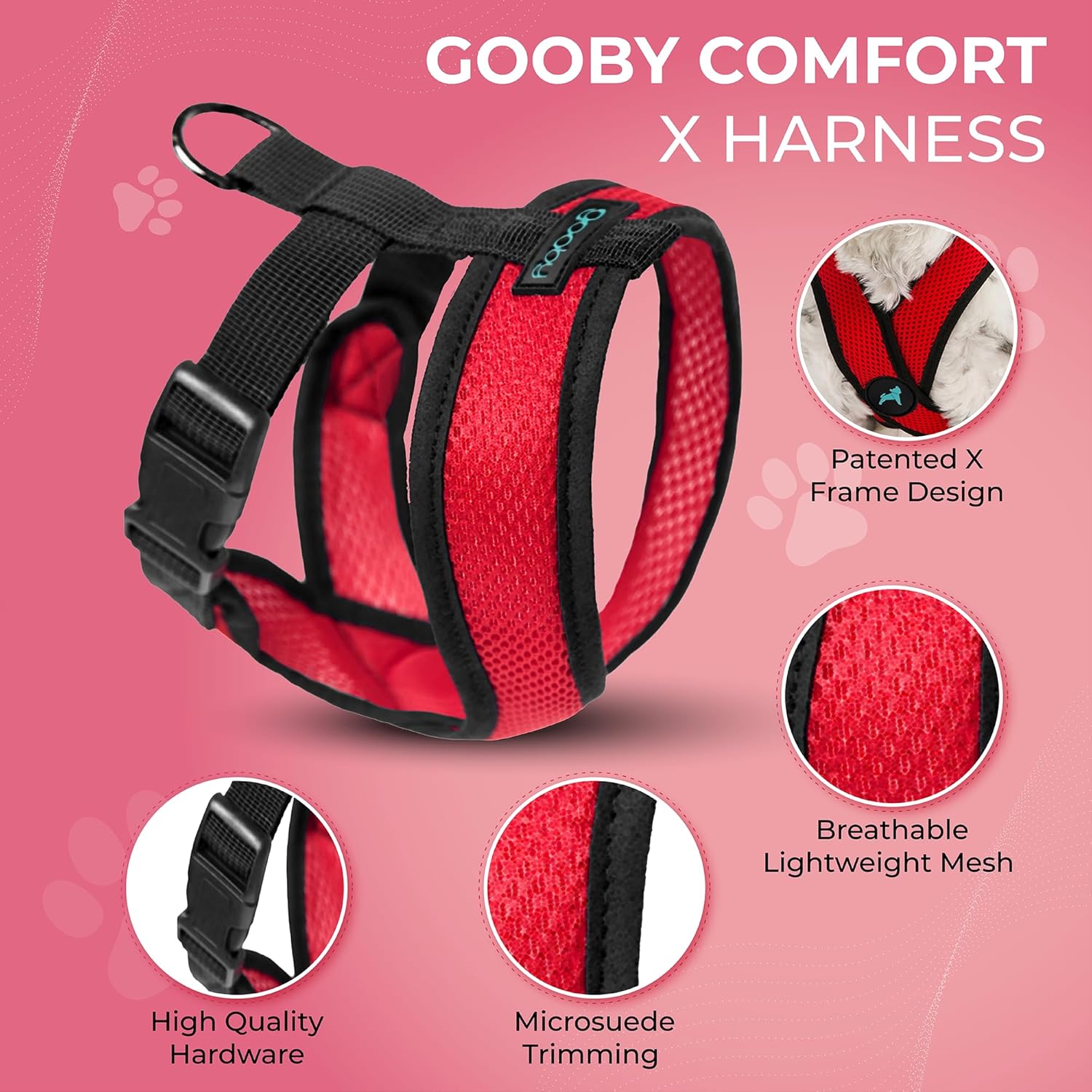 Gooby Comfort X Head in Harness - Red, Medium - No Pull Small Dog Harness, Patented Choke-Free X Frame - Perfect on The Go Dog Harness for Medium Dogs No Pull or Small Dogs for Indoor and Outdoor Use