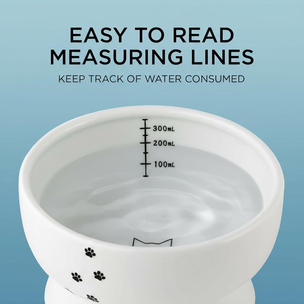 - 【Hydration Made Easy】This porcelain cat feeding bowl with measurement lines let you track your cat’s daily water intake, helping prevent dehydration and related issues. A whisker-friendly and anti-vomit design ensures drinking comfort for kittens and adult cats.