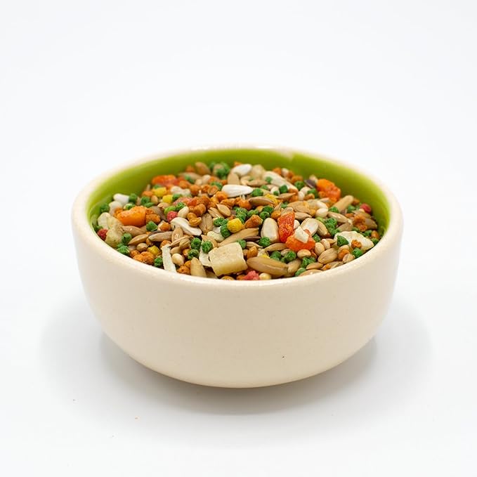 - DELICIOUS & STIMULATING – Our bird feed is the ideal parakeet and budgie food; a blend of smart bird pellets, seeds, vegetables, and fruit provides different shapes and textures stimulating your winged companion's senses, ensuring they are engaged and happy