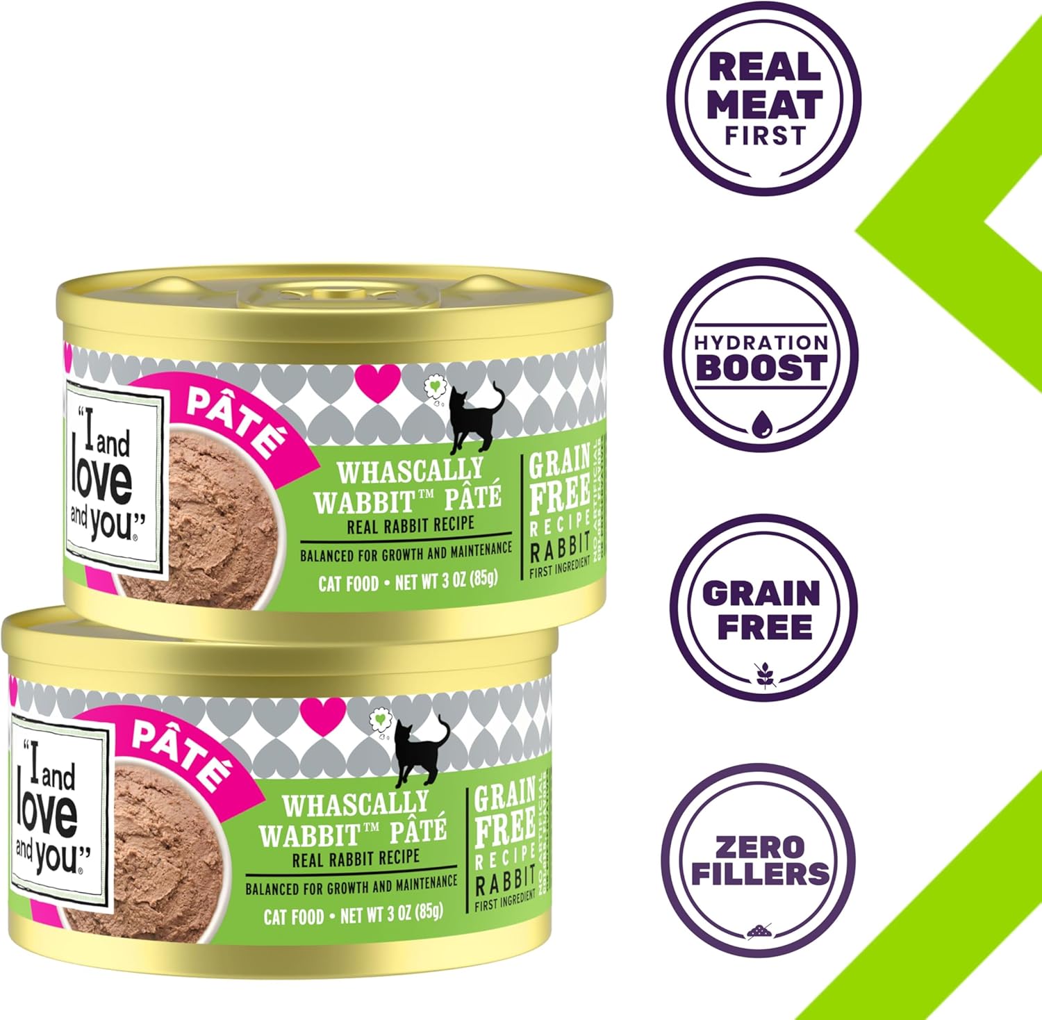 I and love and you Wet Cat Food - Whascally Wabbit Pâté - Rabbit Recipe, Grain Free, Filler Free, 3oz Pack of 24 Cans