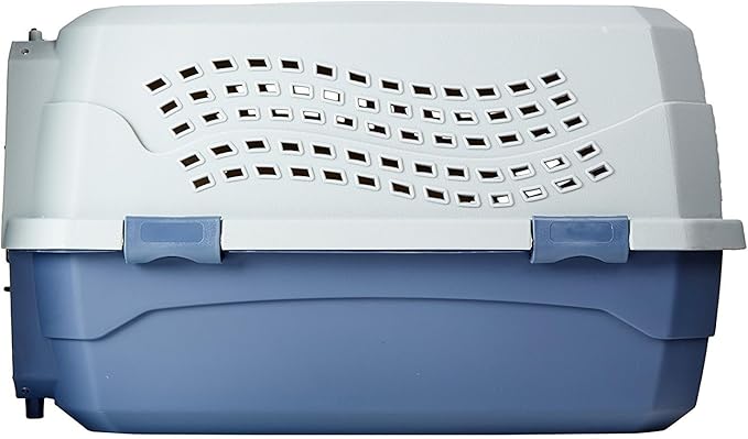 Amazon Basics 2-Door Top-Load Hard-Sided Dogs, Cats Pet Travel Carrier, Gray & Blue, 22.8"L x 15.0"W x 13.0"H