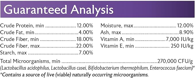 - High fiber level and Low Starch - Grass hay based diet.
