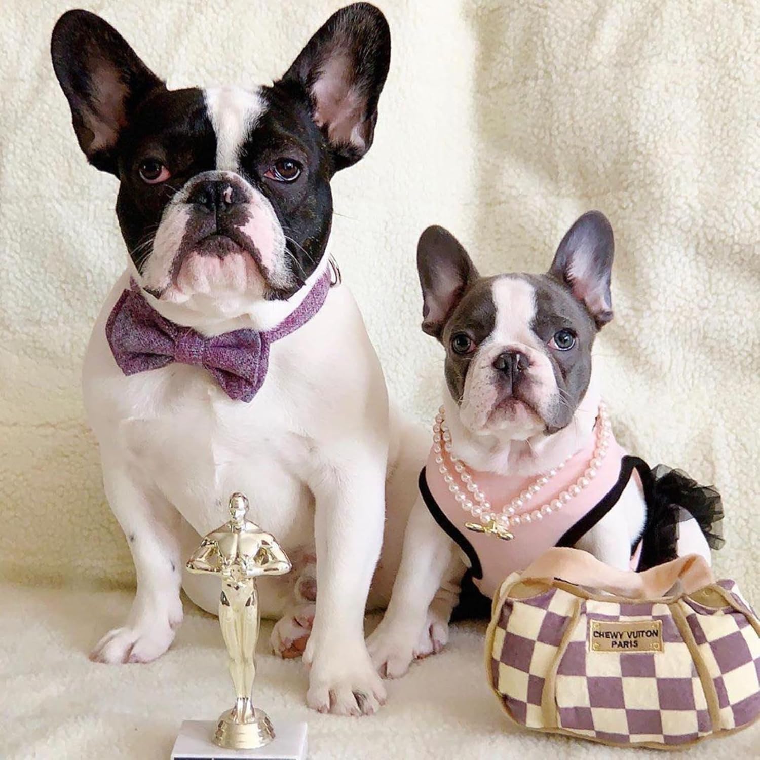- Pup's Fashion Must Have: Let your furry fashionista turn heads with the Checker Chewy Vuiton Handbag! Featuring a chic taupe and cream checker pattern with a hidden squeaker, this is the ultimate birthday dog toy for fetch or flaunting