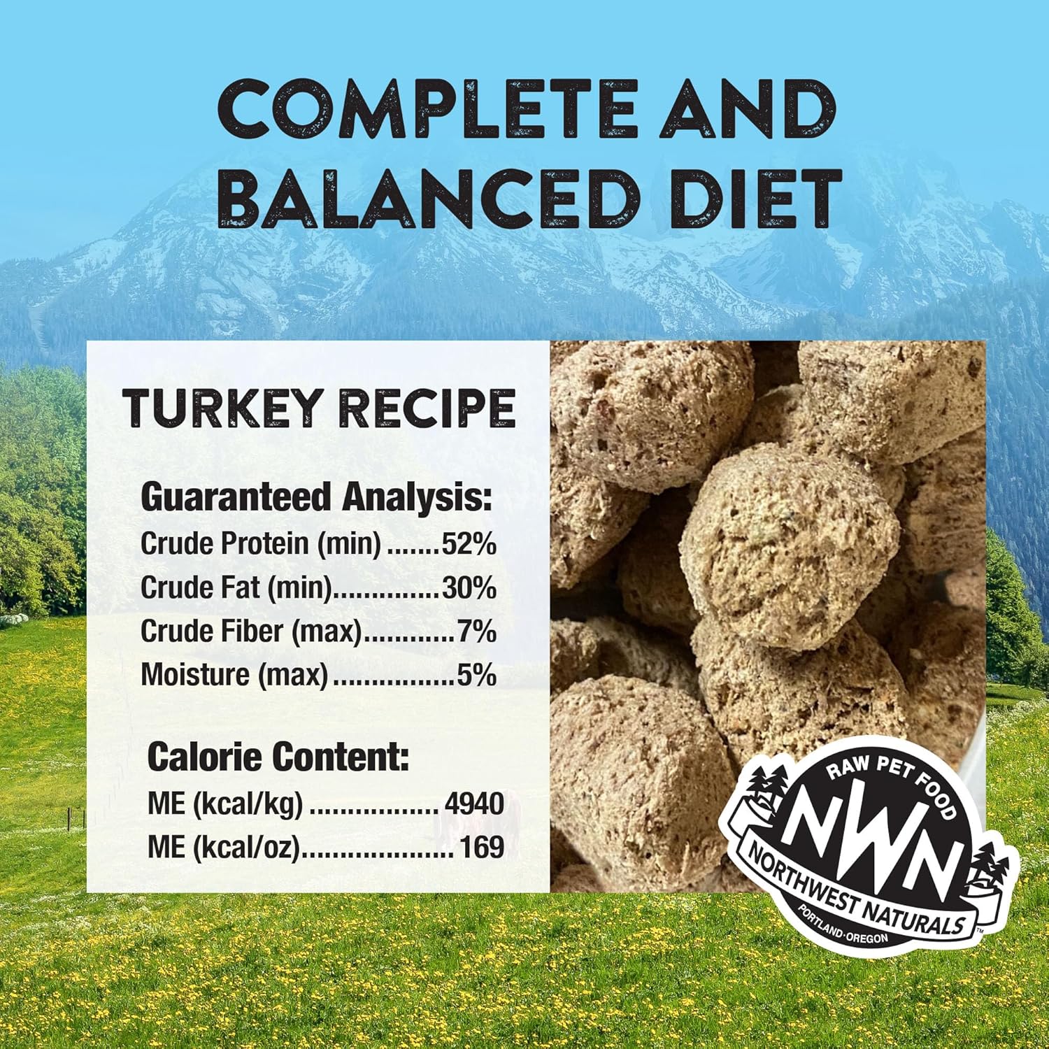 Northwest Naturals Freeze-Dried Turkey Dog Food - Bite-Sized Nuggets - Grain-Free, High-Protein, Raw Diet, Human-Grade, Limited Ingredients, All Natural, Healthy & Nutritious, Made in USA, 12 Oz