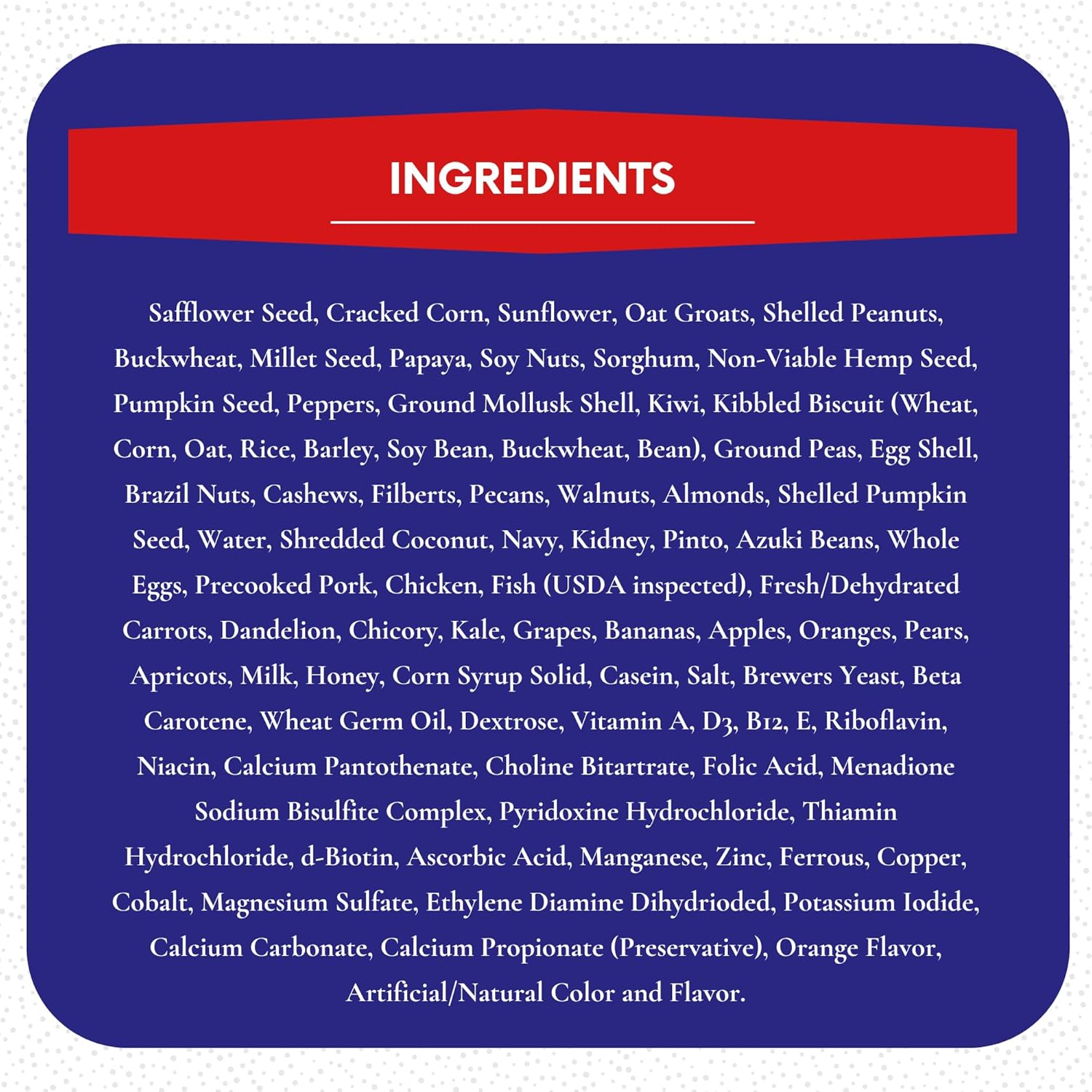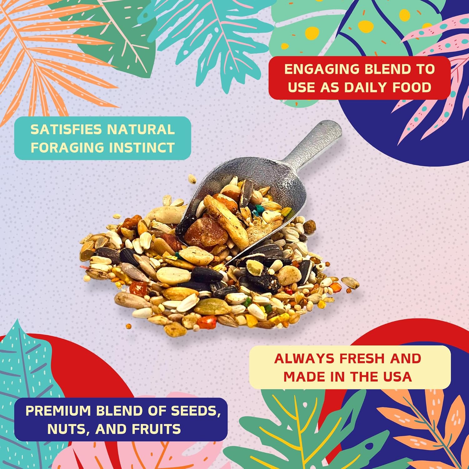ABBA 1400 Premium Bird Food for African Grey, Conure, and Senegal Parrot, Bird Seed Blend with Whole Eggs, Fruits and Nuts - Packed with Protein, Vitamins & Minerals, 5 lbs