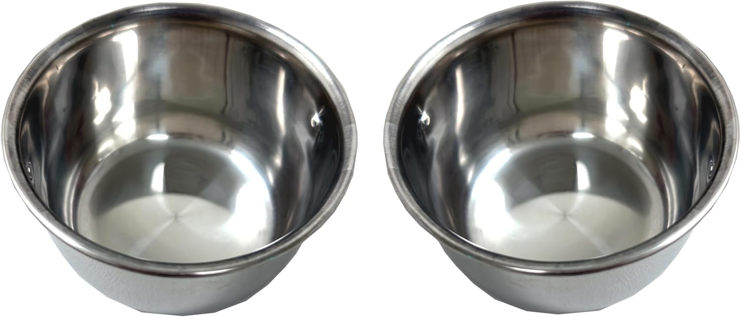 - 2 x Stainless Steel Feeder Bowls With Natural Wooden Stand Perch