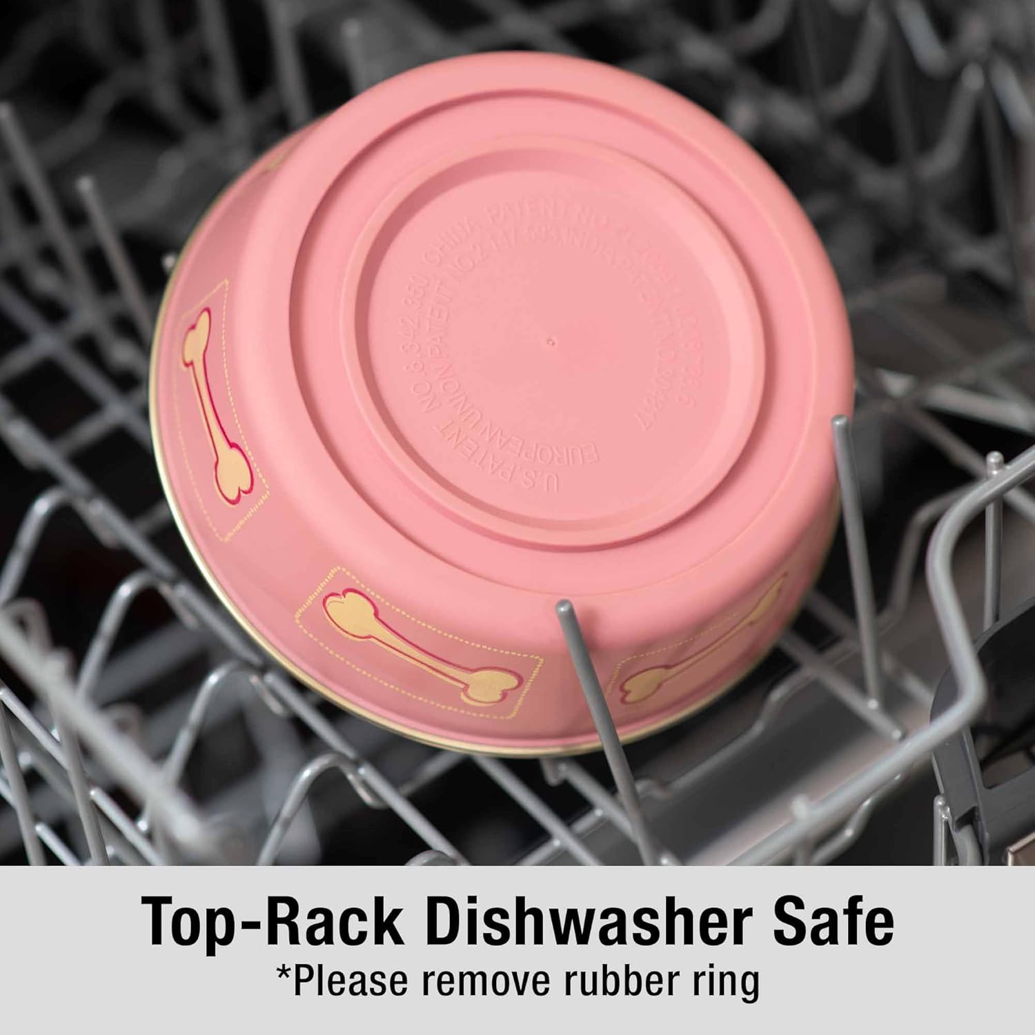 - STAINLESS STEEL & DURABLE - This Bella Bowl (15 oz, 5.5" x 1.75") features a stainless steel design with a poly-resin exterior great for dog food mat, which makes them dish washer safe and easy to keep clean and hygienic. Perfect cat food bowl or dog water bowl for home & travel.