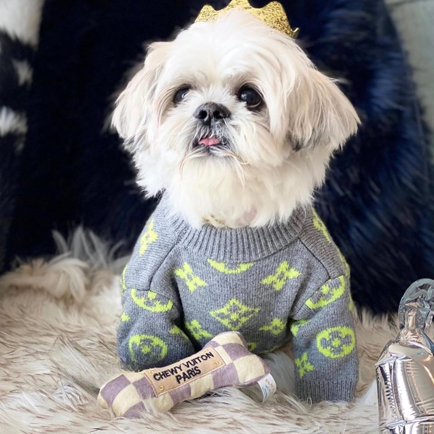 - Funny Parody Plush Dog Toy: Let your furry fashionista fetch some fashion-forward fun with this Checker Chewy Vuiton Bone that features a stylish taupe and cream checker pattern. It’s a playful, cute interactive dog toy that combines style & fun. Size Small 4.5"x3"x1".