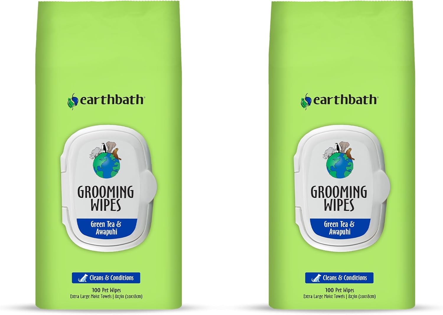 earthbath, Green Tea & Awapuhi Grooming Wipes - Dog Wipes for Paws and Butt, Best Pet Wipes for Dogs & Cats, Made in USA, Cruelty-Free Dog Cleaning Wipes, Removes Dirt & Dander - 100 Count (2 Pack)