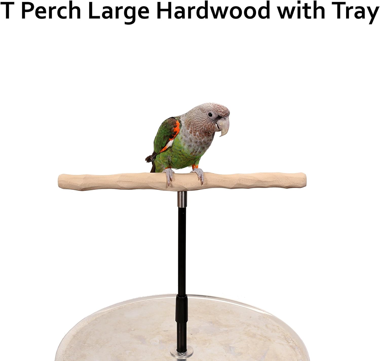 Parrot Training Perch Stand with Potty Tray (T Perch Hardwood, Large)