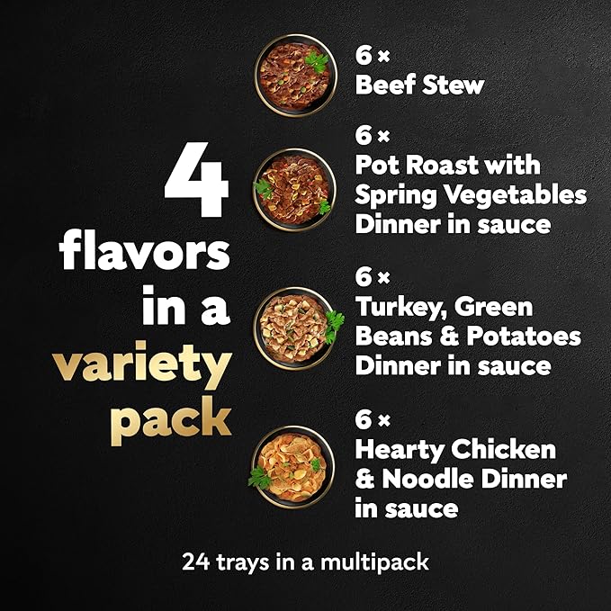 Cesar Home Delights Adult Wet Dog Food, Pot Roast with Spring Vegetables, Beef Stew, Turkey, Green Beans, & Potatoes, and Hearty Chicken & Noodle Variety Pack, 3.5 oz. (24 Count, Pack of 1)