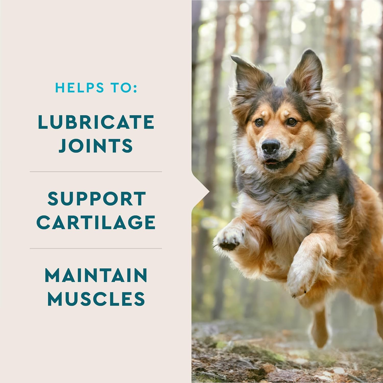 - High-Quality Ingredients: Made with a careful selection of high-quality ingredients, our dog joint supplement formula includes omegas to help lubricate joints, glucosamine supporting healthy joints and mobility, and MSM maintaining healthy muscles