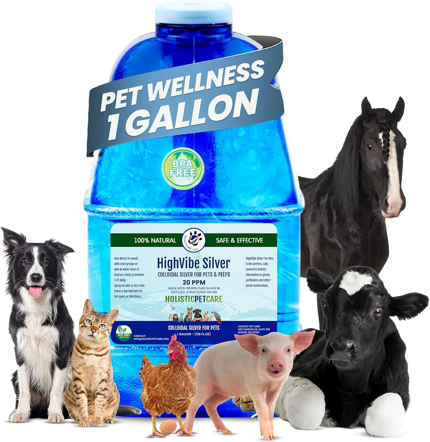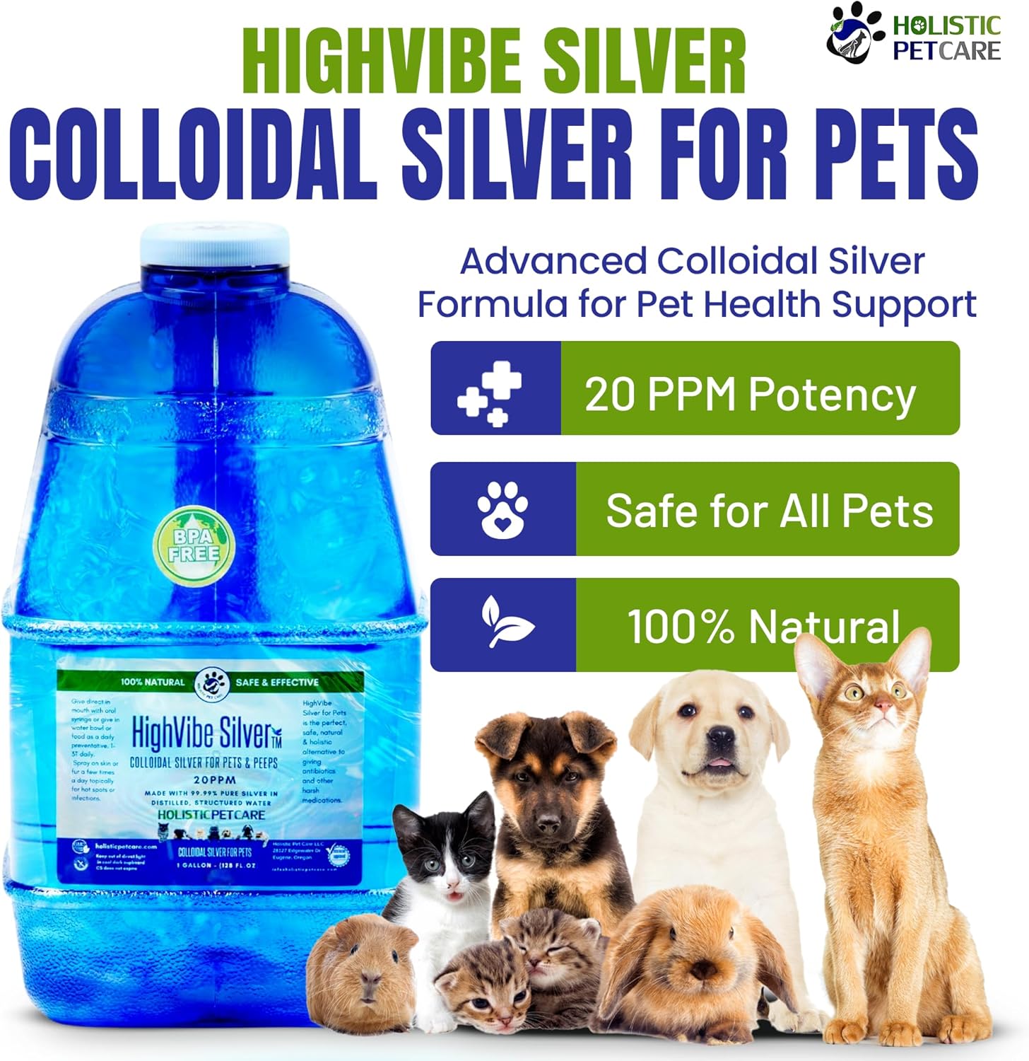 Holistic Pet Care - Colloidal Silver for Dogs, Cats, Horses & Birds - 20 PPM Effective Wound Care, Hot Spot Treatment, Skin Relief & Immune Support - All-Natural Pet Colloidal Silver (1 Gallon)