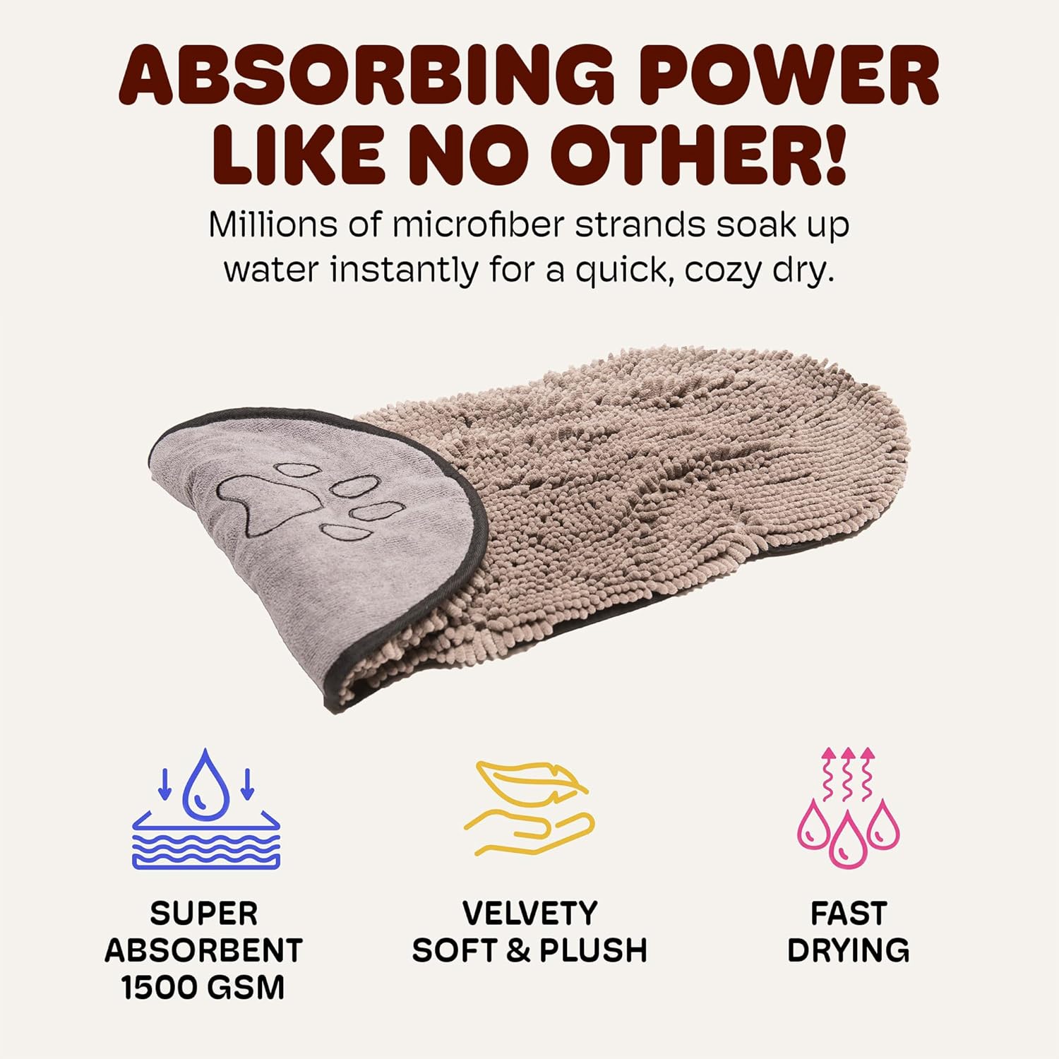 - Super Absorbent: Made with a superior blend of microfibers and featuring a Grams Per Square Meter (GSM) rating of 1500, this dog towel creates a sponge that traps up to 8 times its weight in water and out absorbs similar polyester-based products .