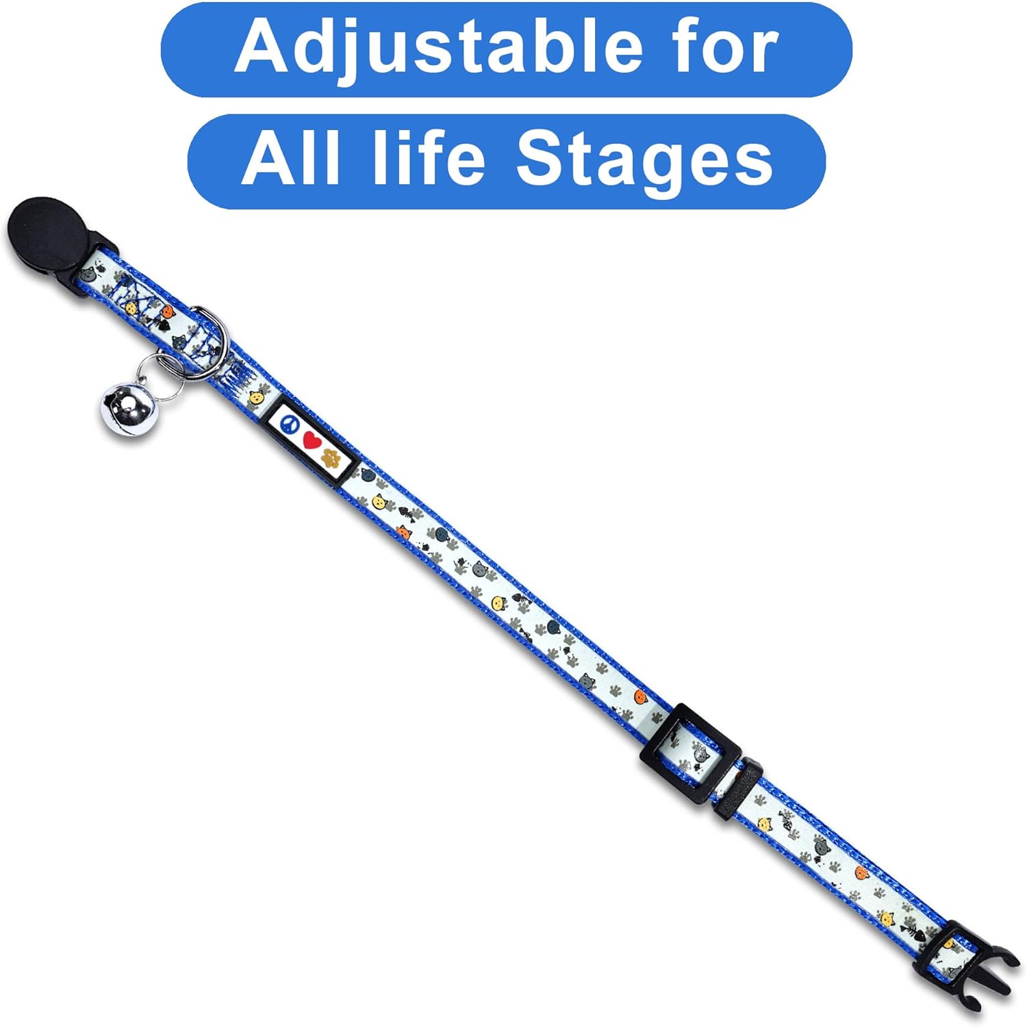 Pawtitas Glow in The Dark Cat Collar with Safety Buckle and Removable Bell Cat Collar Kitten Collar Blue Cat Collar