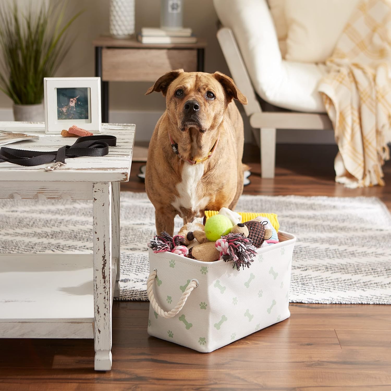 Bone Dry Pet Storage Collection Paw and Bone Print, Small Rectangle, 14x8x9", Mint