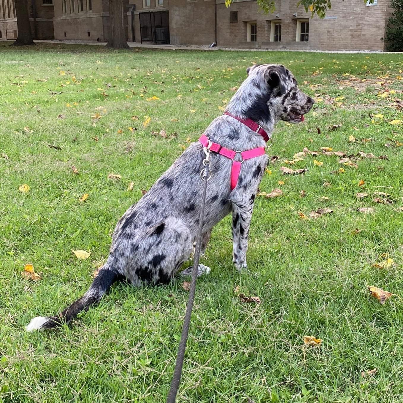 - [No Pull, No Choke] - Both sides of the harness are like a triangle structure, which can wrap around the dog's body perfectly, you will feel good control during use. And the stress is on the dog's chest, not its neck, so this harness allows dogs to breathe freely.