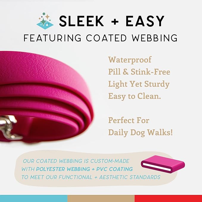- Durable & Stylish: Our Funston Dog Leash is made from waterproof, scratch-resistant, stink & pill-free coated webbing. Its matte finish and lightly textured surface make cleaning a breeze. A quick wipe-down is all it takes to keep it looking pristine through all your adventures.