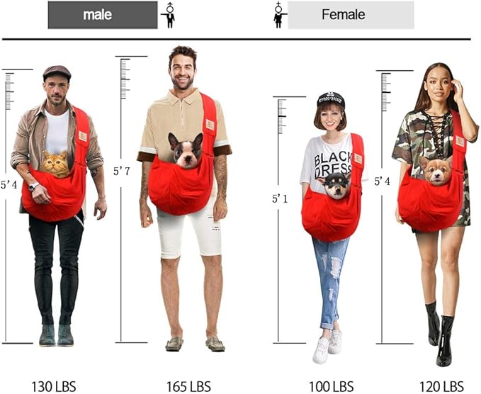 Tomkas Small Dog Sling Carrier - Zipper Pocket & Adjustable Strap - for 3-10 lbs Pets(Red)