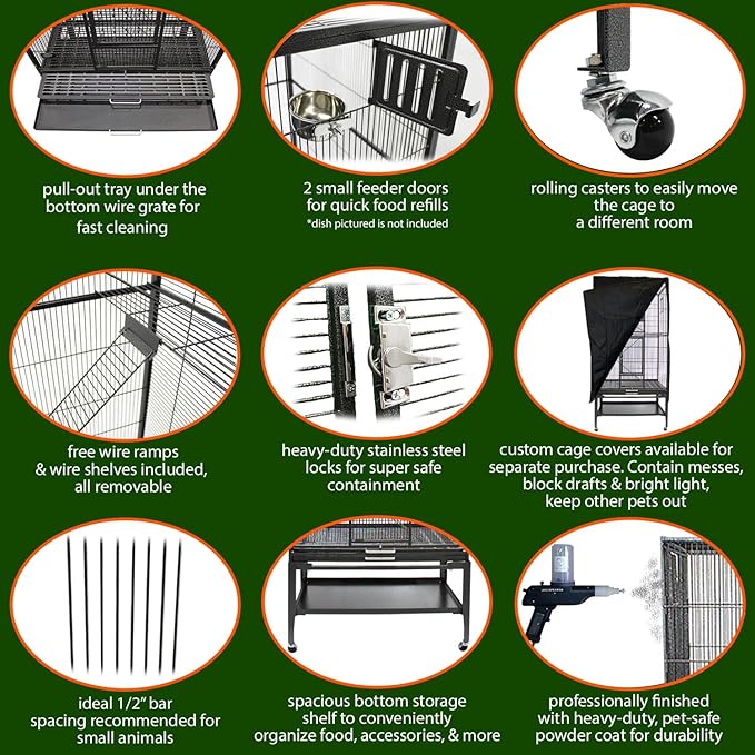 Madagascar Cage - 60" Tall Durable Spacious Metal Cage - for Sugar Gliders, Squirrels, Marmosets & Other Small Pets