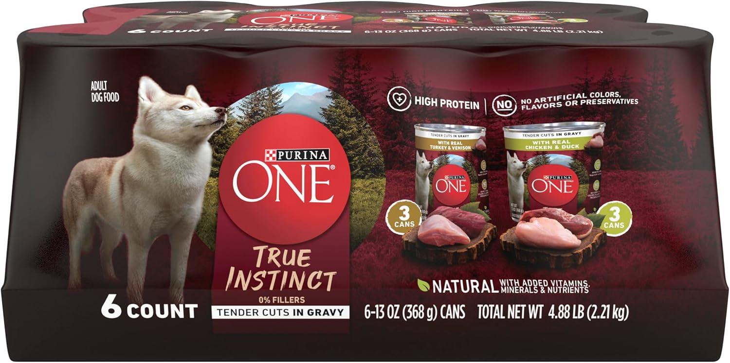 Purina ONE True Instinct Tender Cuts in Gravy with Real Turkey and Venison, and with Real Chicken and Duck High Protein Wet Dog Food Variety Pack - (Pack of 6) 13 Oz. Cans