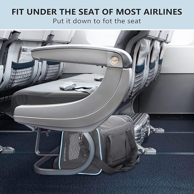 - AIRLINE APPROVED CARRIER--This carrier is airlines approved.Fit for American Airlines,United Airlines,Alaska Airlines,Jet Blue,Southwest,Frontier Airlines,Allegiant airlines,Virgin America,Lufthansa and so on .Easily to get this under the airplane seat when travel. (PS:There are two detachable fiber rods on both sides of the top of the carrier. When the size Large carrier is too high to fit under the seat, you can remove the two fiber optic rods and put them in easily)