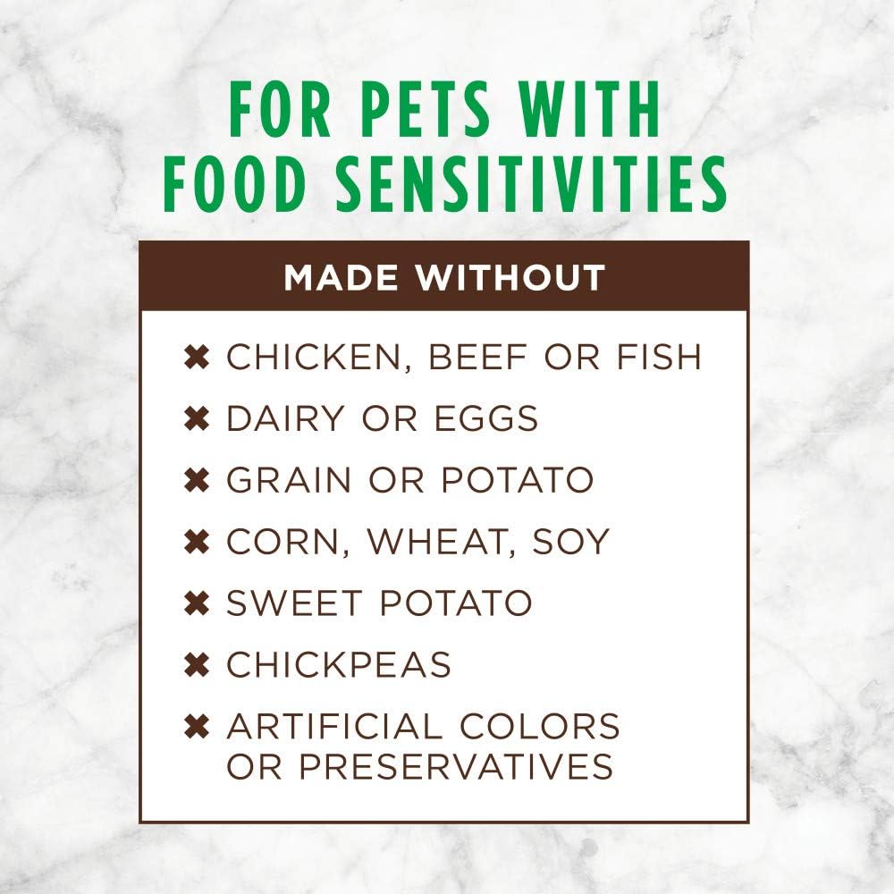 - NATURAL INGREDIENTS: This grain free dog food uses responsibly sourced grass-fed lamb as the first and only animal protein, paired with a single vegetable for purposeful simplicity. Made without grain, dairy, eggs, chicken, beef, fish, sweet potato, potato, chickpeas, corn, wheat, soy, artificial colors, or preservatives.