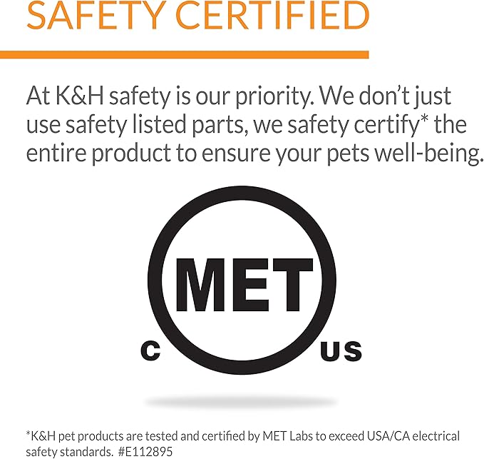 - SAFETY: All K&H heated cat houses have been tested & are certified by MET Labs and exceeds USA/CA electrical safety standards; For indoor/outdoor use with 110/120 volt electrical current only