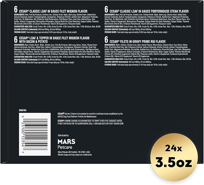 - Peel Away Seals: Cesar Classic Loafs gourmet soft dog food is served in convenient trays with easy, peel away seals
