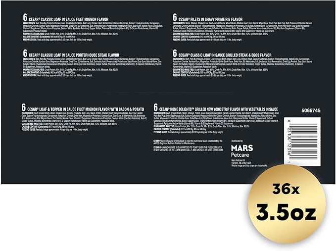 - Peel Away Seals: Cesar Classic Loafs gourmet soft dog food is served in convenient trays with easy, peel away seals