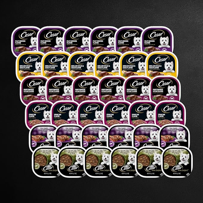 Cesar Wet Dog Food Steak Lovers Variety Pack with Real Meat, 3.5 oz. Trays (36 Count, Pack of 1)
