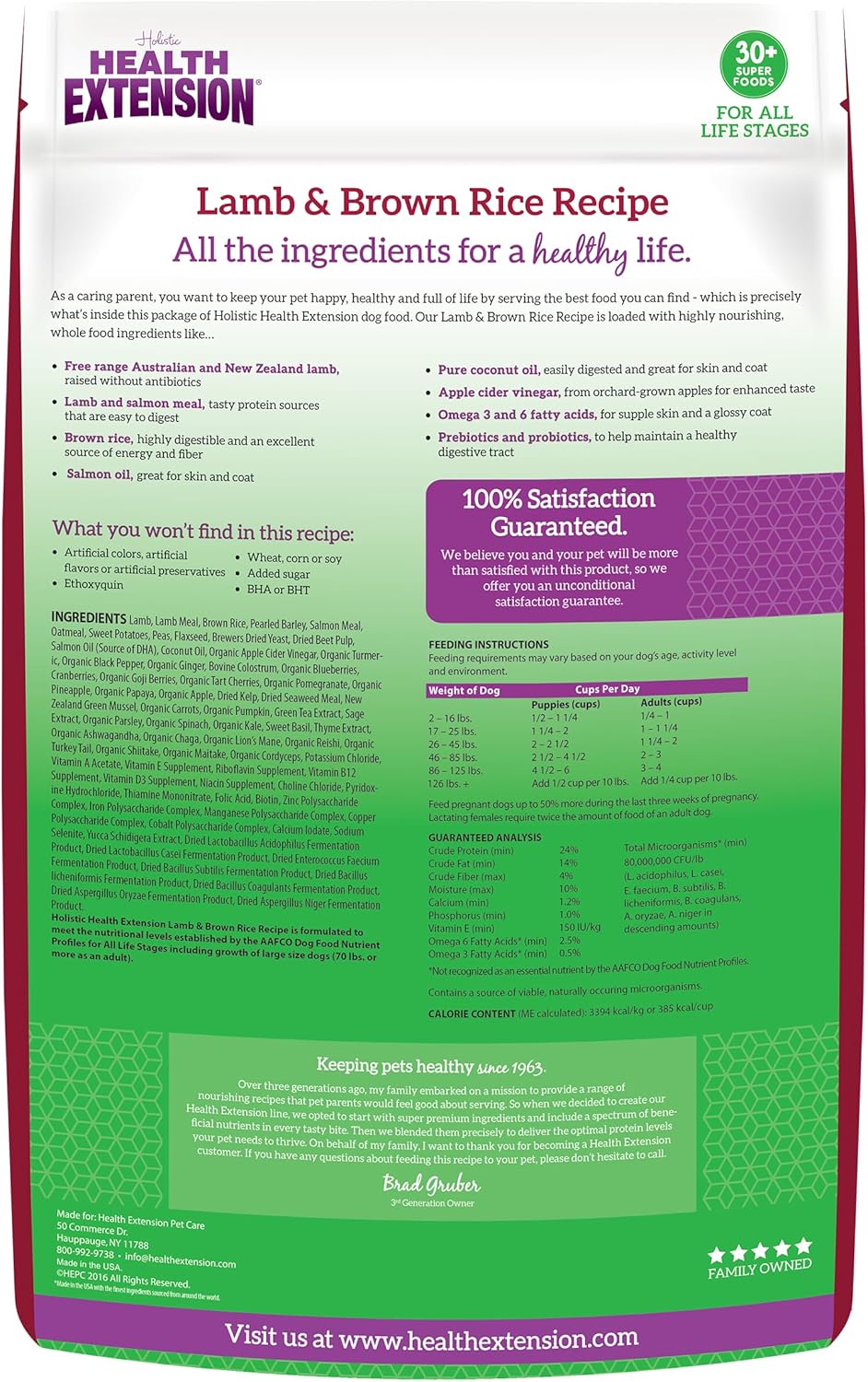 Health Extension Lamb & Brown Rice Dry Dog Food, Protein Packed Formula with Probiotics & Superfoods for Digestion & Coat Health (1lb)