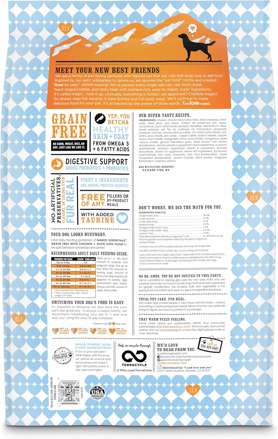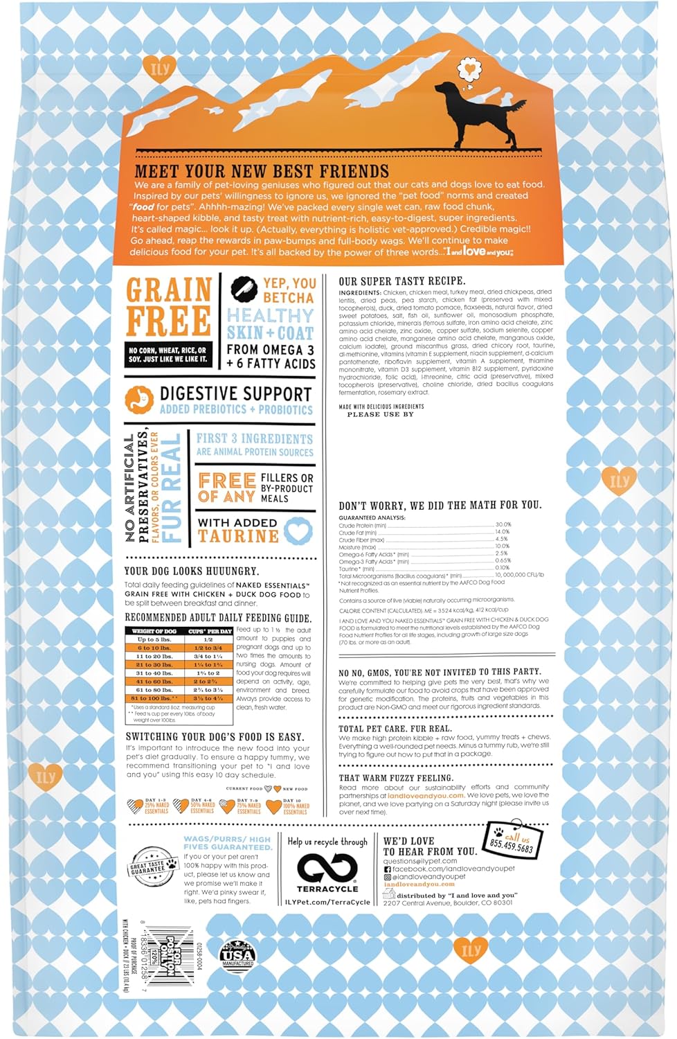 I and love and you Naked Essentials Dry Dog Food - Chicken + Duck - High Protein, Real Meat, No Fillers, Prebiotics + Probiotics, 23lb Bag