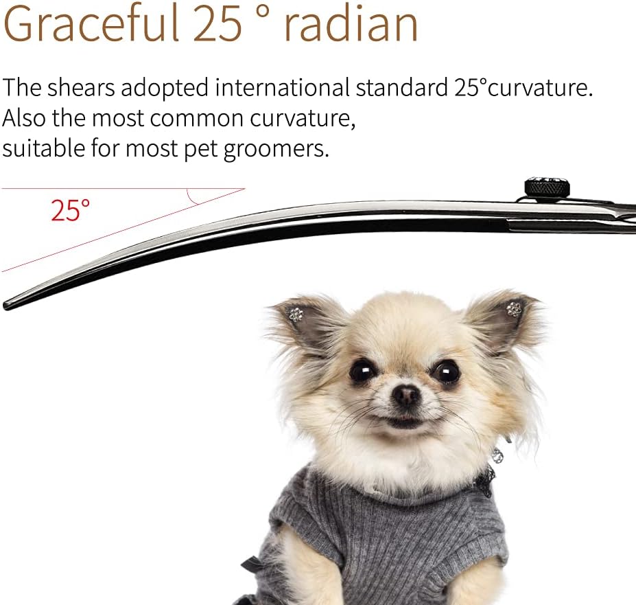 Fenice 7.5" Professional Grooming Scissors for Dogs, Made of Japanese Stainless Steel, Curved Shears (Black)