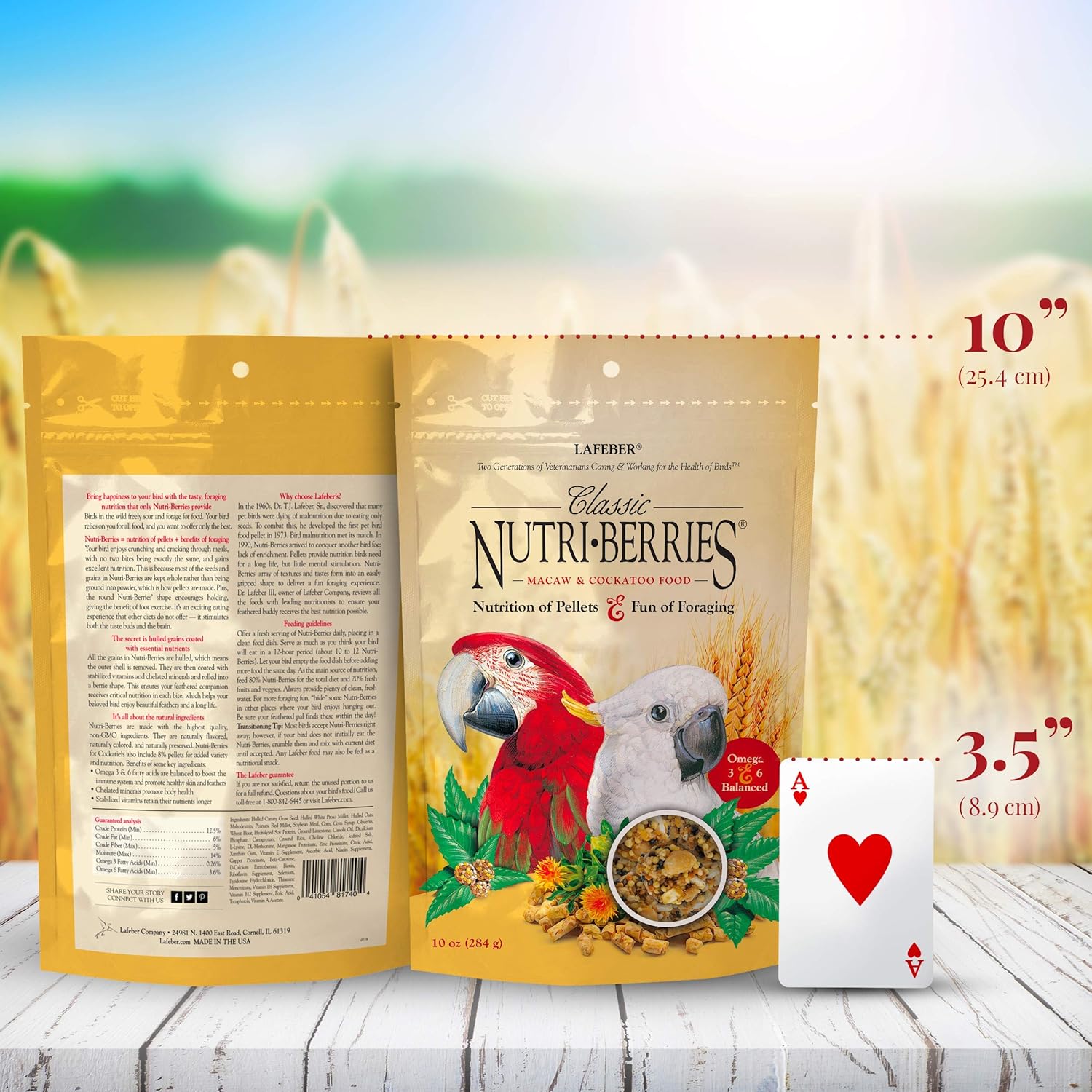 LAFEBER'S Classic Nutri-Berries Pet Bird Food, Made with Non-GMO and Human-Grade Ingredients, for Macaws and Cockatoos, 10 oz