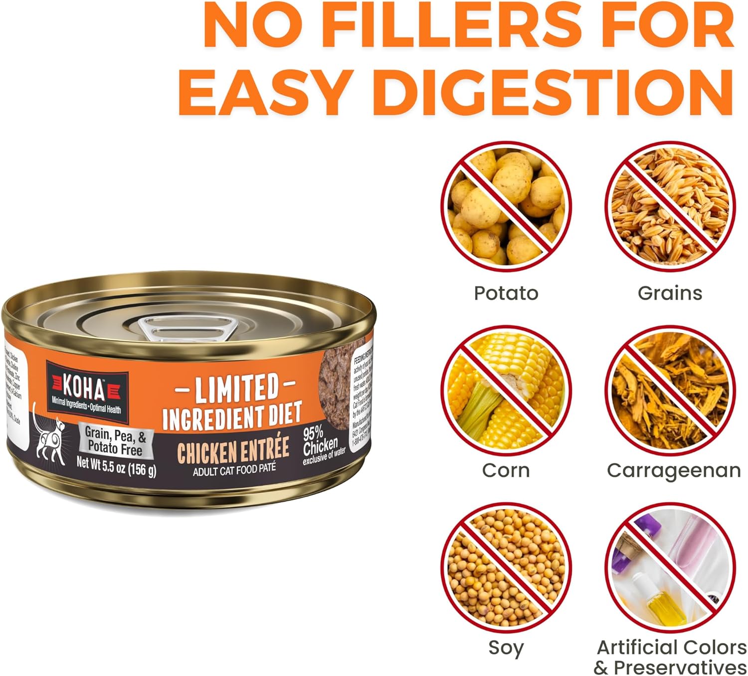 KOHA Limited Ingredient Diet Chicken Pate for Cats - Single Meat Wet Cat Food for Sensitive Stomachs - Pate Cat Food with No Fillers - 5.5oz Pack of 24